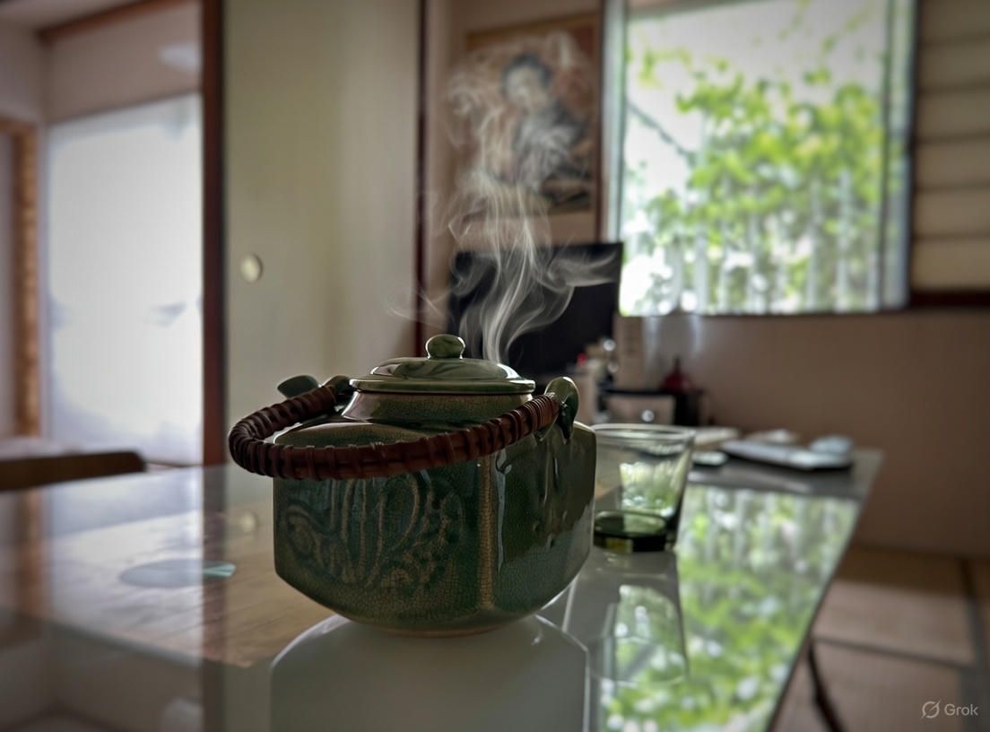 お茶と美はアート系民宿「狭山美学校」1Fにある